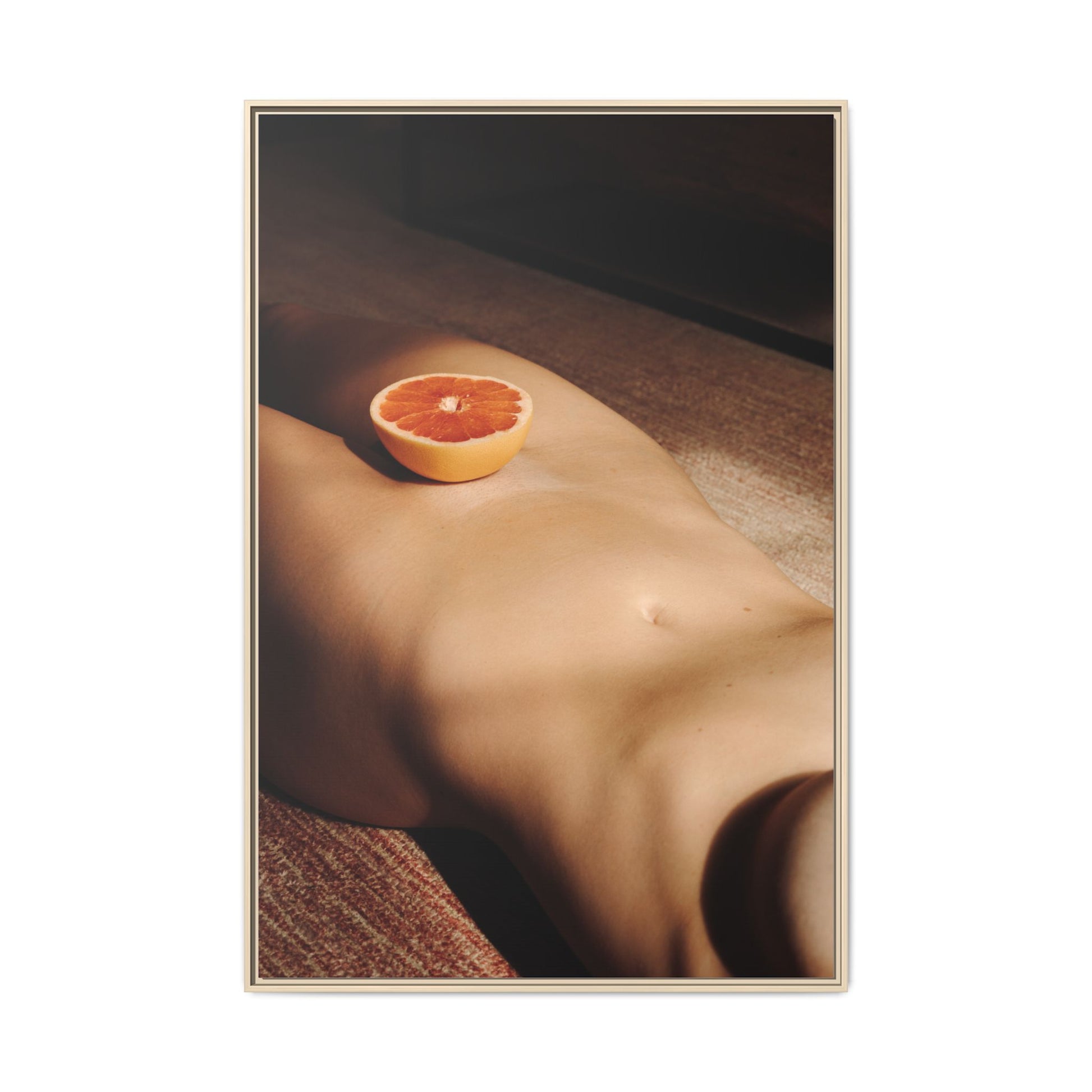 Framed Matte Canvas Wall Art — Minimal Nude Still Life with Grapefruit
